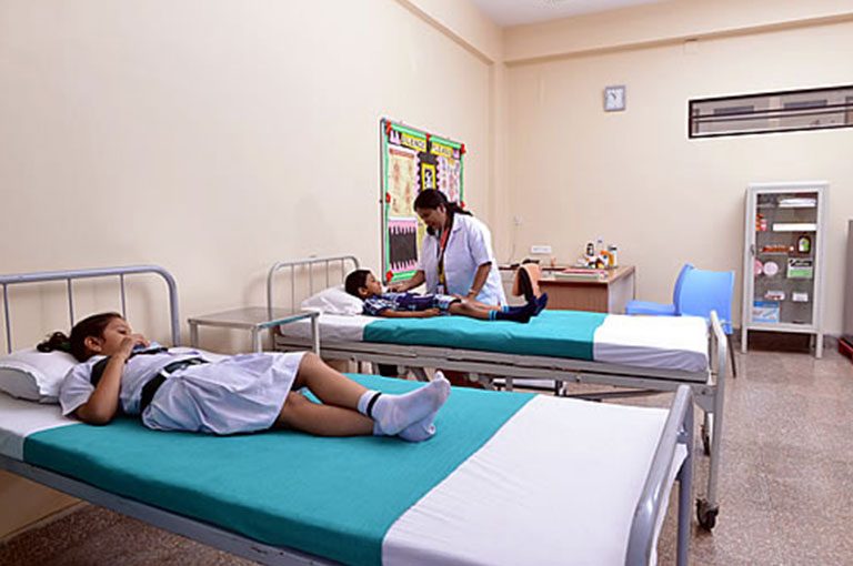 We have a well equipped infirmary in the school manned by a trained nurse. Apart from giving first aid during the school hours, we take care of the following functions: